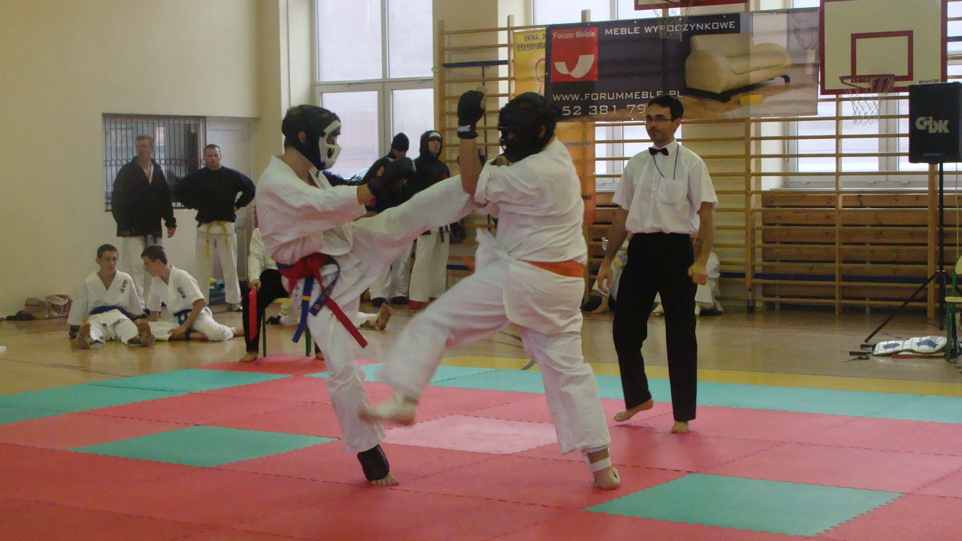 Po turnieju Kata na 2 matach rozpoczęto eliminacje w konkurencji kumite juniorów oraz seniorów tzw. ?Pierwsze Starcie?. Zawodnicy walczyli w obowiązkowych ochraniaczach na nogi i ręce a także w kaskach z kratką.