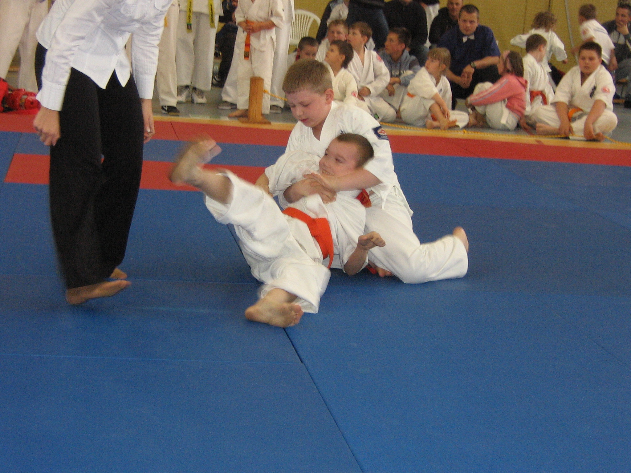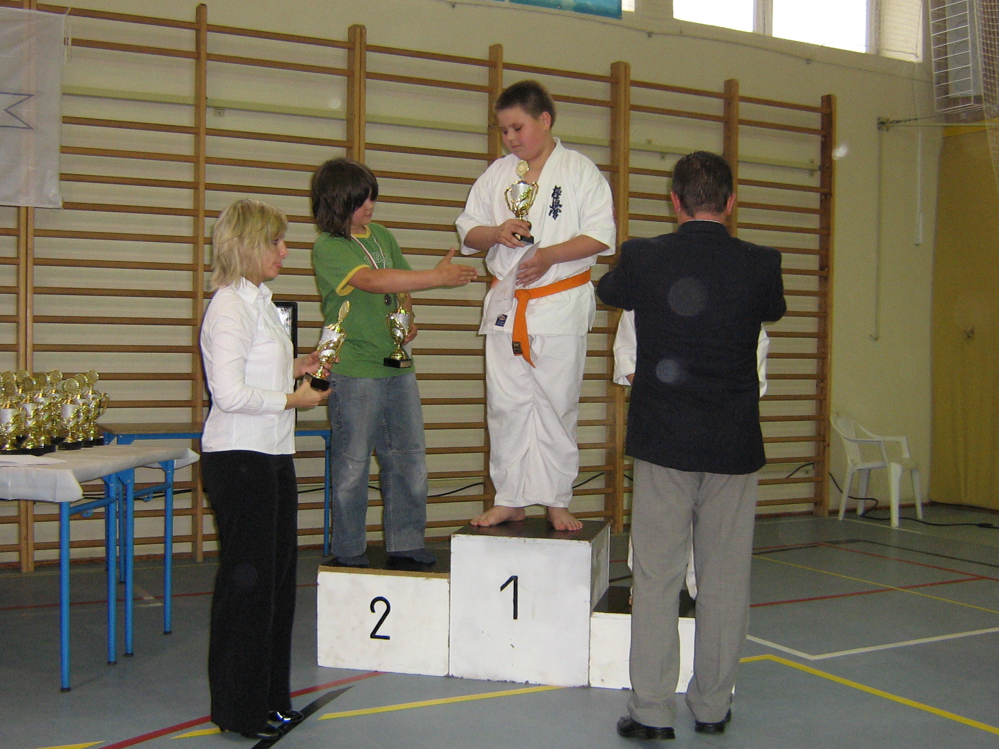 I na koniec kumite – tutaj startowało 3 naszych zawodników. Dla Bruno i Łukasza był to pierwszy start, dlatego mimo porażki w pierwszej walce należą im się słowa uznania za odwagę i podjęcie wyzwania. Dla Michała Truszkowskiego był to kolejny start. Doświadczenie zaczyna procentować. Michał w bardzo dobrym stylu wygrał walkę półfinałową a w finale uznał wyższość przeciwnika dopiero w dogrywce, pierwsze 2 minuty walki sędziowie ocenili jako remisowe. Nie bez znaczenia dla wyniku starcia była również duża różnica wagi na korzyć przeciwnika Michała. W ten sposób do srebrnego medalu w grapplingu doszedł medal w tym samym kolorze w kumite.