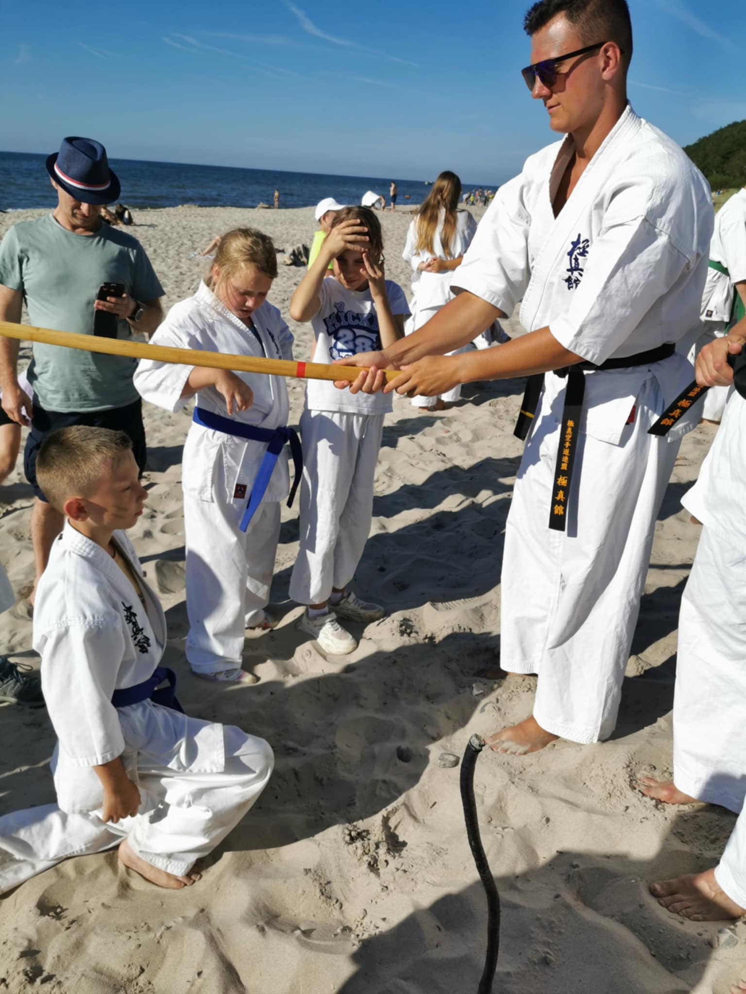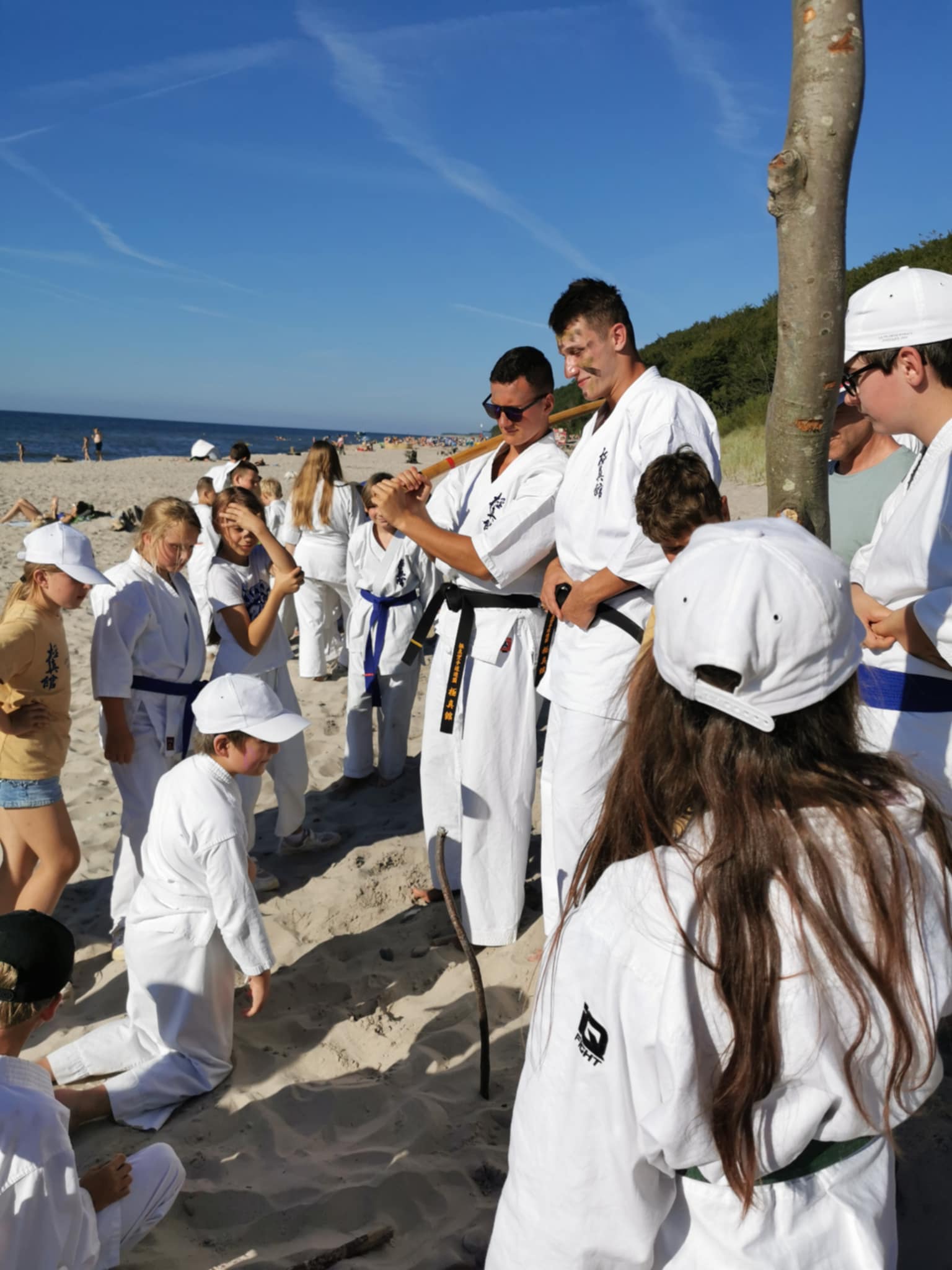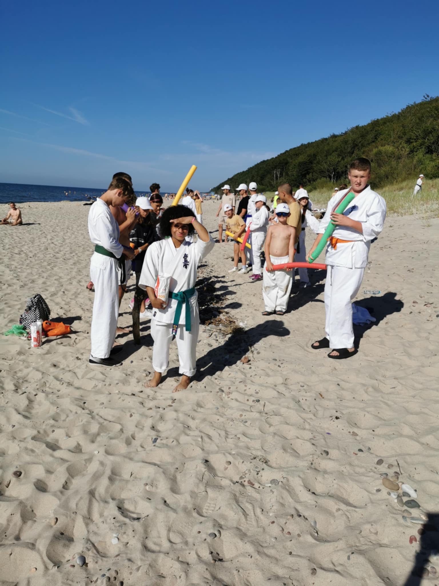 Po raz siódmy gościliśmy w Ośrodku Lazur w Poddąbiu, w dniach 11-20 lipca. Jak co roku program obozu obejmował treningi karate na terenie ośrodka, w salkach wewnątrz budynku, na plaży i w lesie. W tym roku po raz pierwszy starsi uczestnicy mieli możliwość trenować w grupie kick boxingu pod opieką sensei Stanisława. Jak tylko pogoda pozwalała odwiedzaliśmy plażę i miasteczko. W czasie wycieczki byliśmy w Dolinie Charlotty i w Aqua Parku w Słupsku. W programie obozu znalazły się również bitwy na nerfy, rozgrywki na boisku siatkówki, piłki nożnej i koszykówki, wycieczki do lasu, ognisko, dyskoteka i pasowanie samuraja, oraz egzamin na stopnie szkoleniowe kyu. W obozie udział wzięli karatecy z Chełma, Gdańska, Gdyni, Rumi, Redy i Leśniewa. Treningi prowadzili sensei Staszek, Bartek, Arek, Marcin, Marek, Łukasz i Łukasz :). Pani Nadia wsparła naszą regenerację przyśpieszonym kursem masażu. I tak szybko zleciało 10 dni. Za rok widzimy się znów w Poddąbiu. Osu.