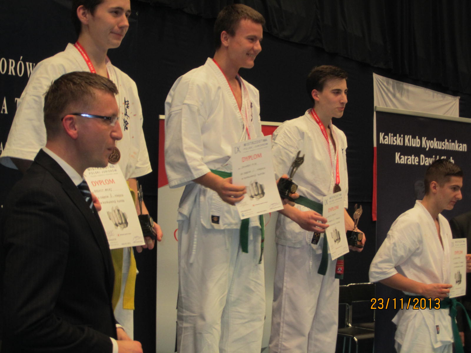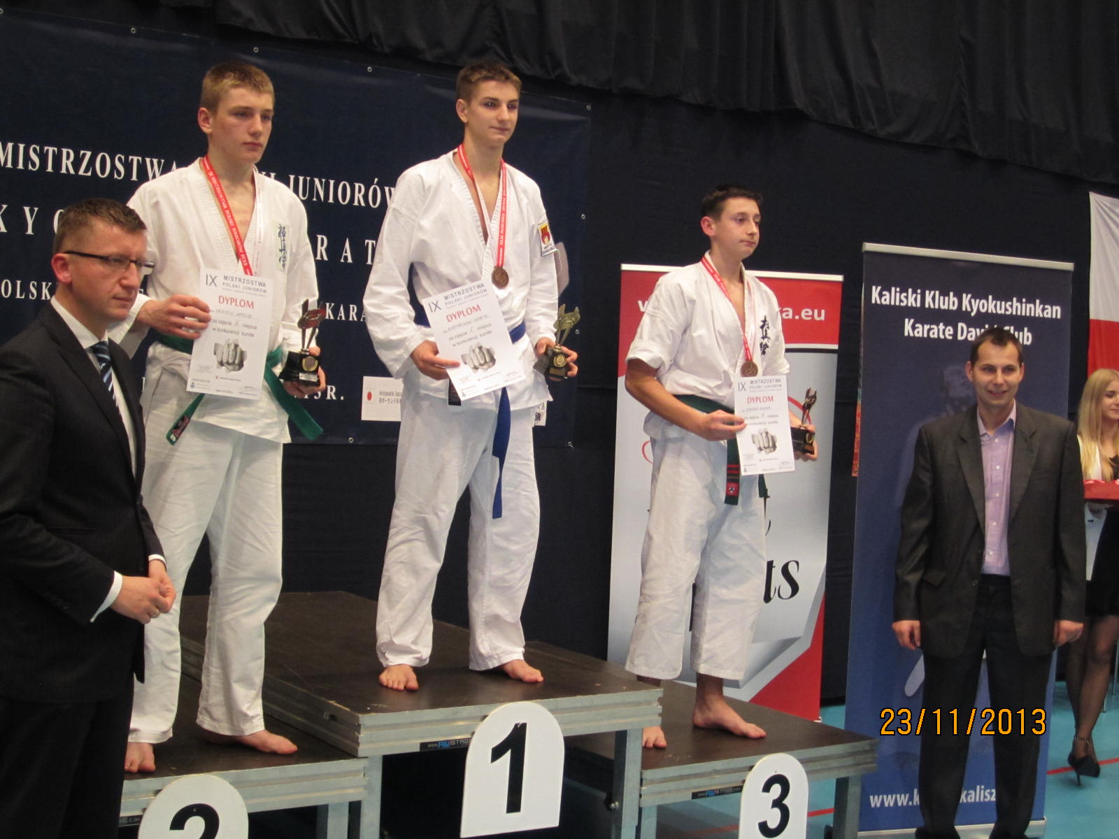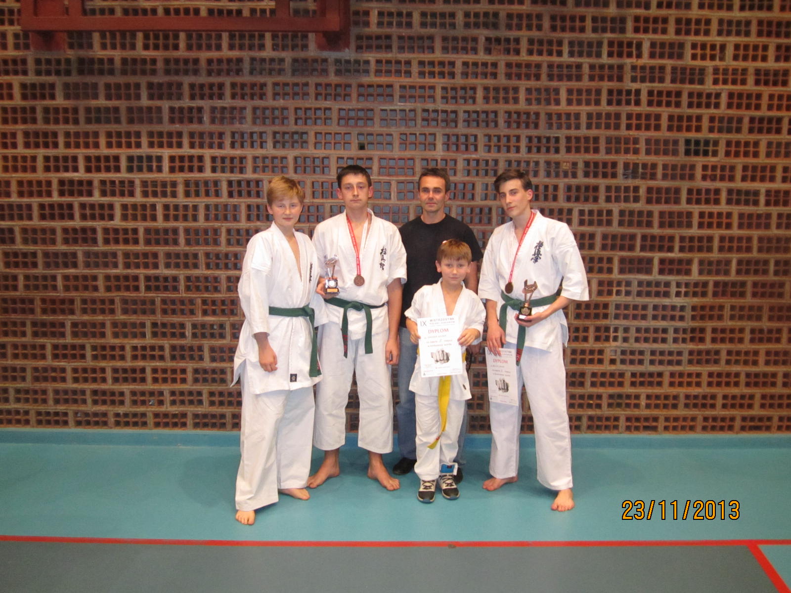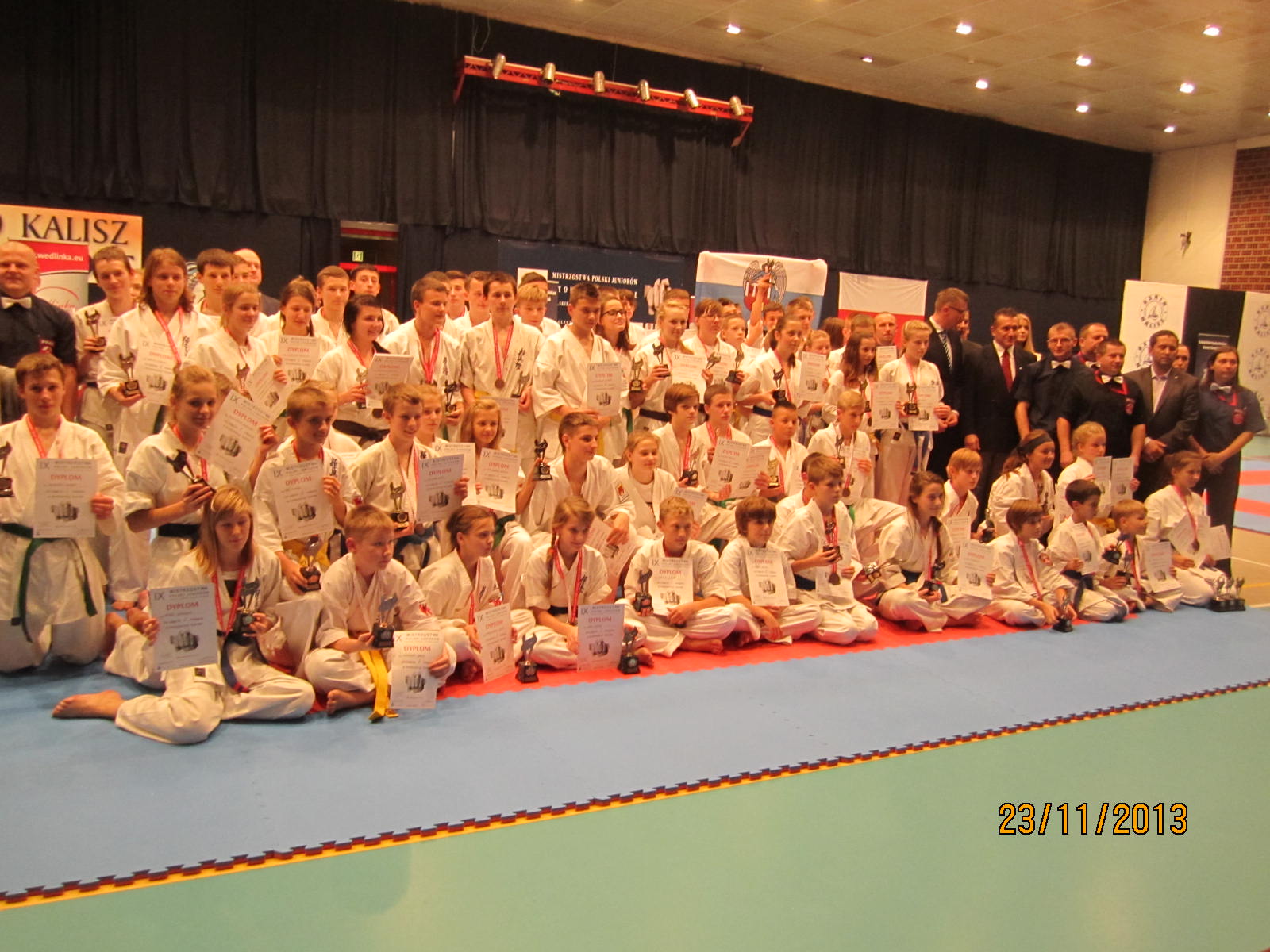 W dniu 23 listopada 2013 roku odbyły się w Kaliszu Mistrzostwa Polski Juniorów PFKK. Nasz klub reprezentowało 4 zawodników – Kacper Szreder, Damian Walczyk, Jędrzej Dziewior i Rafał Wasiuta, oraz sensei Marek Wilusz jako opiekun. Wszyscy najpierw wystąpili najpierw w konkurencji kata. Mimo dobrego występu nie udało im się awansować do drugiej tury. Rafał Wasiuta i Jędrzej Dziewior przegrali swoje pierwsze walki i odpadli z dalszej rywalizacji. Z kolei Damian Walczyk wygrał swoją walkę przed czasem i awansował do półfinału, gdzie z kolei przegrał po wyrównanej walce i dogrywce. Walkę o 3 miejsce mimo kontuzji odniesionej w poprzedniej walce, również po dogrywce, tym razem wygrał. Również Kacper Szreder rywalizację w konkurencji kumite uplasował się na 3 miejscu.